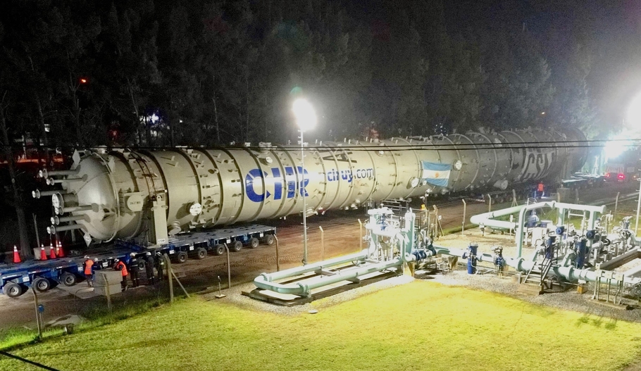 Culminó con éxito el complejo operativo que permitió el ingreso de una nueva torre de destilación a la refinería de Axion Energy en Campana, una estructura de grandes dimensiones que debió ser trasladada por tierra desde el puerto de Zárate.