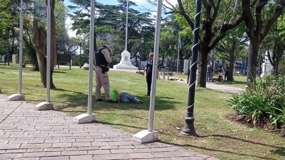 La tranquilidad del mediodía se vio alterada por una pelea entre dos hombres en situación de calle, que dejó a uno de ellos herido y asistido por el SAME. En tanto, personal policial junto a efectivos de Prefectura (que realiza tareas de prevención en las plazas del casco céntrico) lograron contener a ambos.