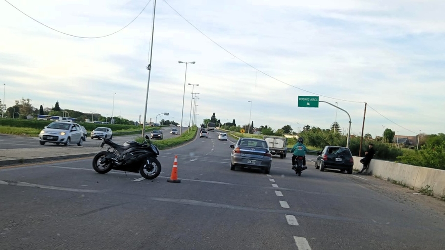 Un motociclista resultó herido tras un choque entre una kawasaki y un Chevrolet Corsa ocurrido este viernes por la tarde en la autovía, frente al barrio San Felipe, a la altura del acceso a Campana.