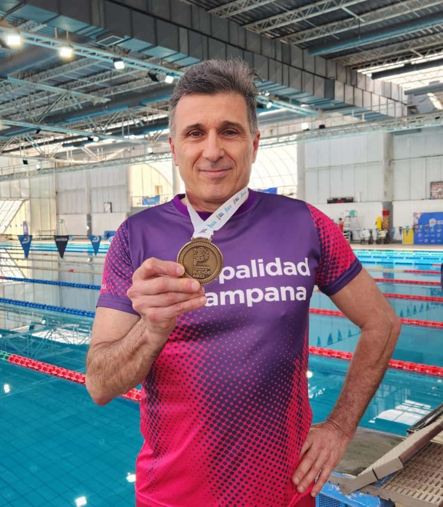 Campana volvió a subirse a lo más alto del podio en los Juegos Bonaerenses que se están disputando en la ciudad de Mar del Plata, gracias a Diego Padovani, quien obtuvo la medalla de oro en los 200 metros libres en la categoría Adultos Mayores de Natación.