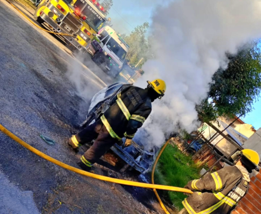El siniestro ocurrió esta mañana en la calle Iturriaga, entre Colectora Norte y Pecorena, en el barrio San Cayetano. Bomberos Voluntarios de Campana trabajaron en el lugar y lograron controlar el fuego sin que se registraran heridos.