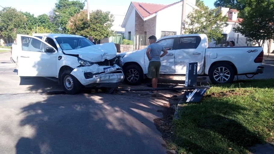 Un fuerte choque entre dos camionetas Toyota dejó importantes daños materiales en la tarde de este jueves en la intersección de las calles Moreno y Cabrera.