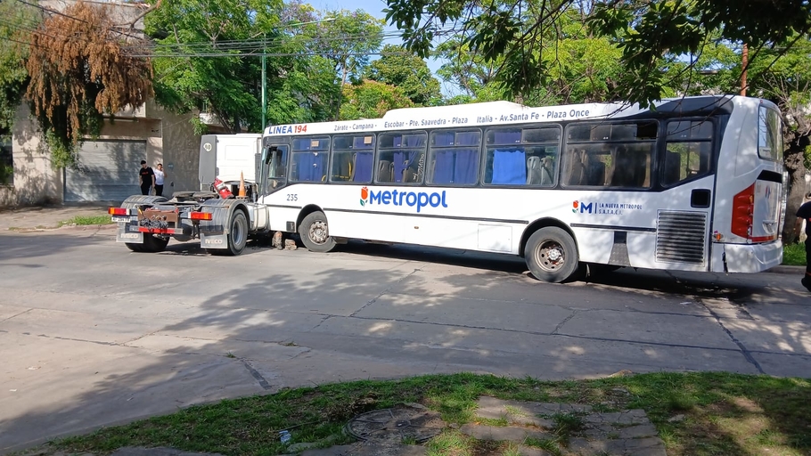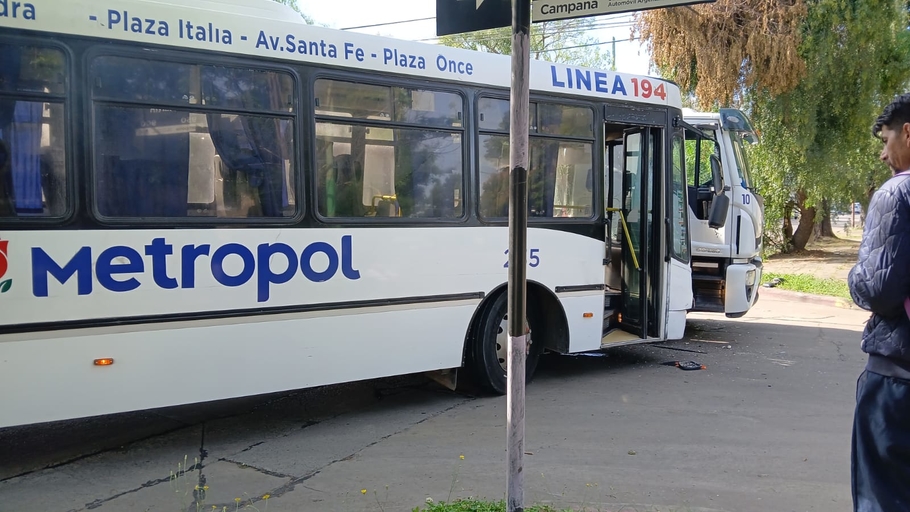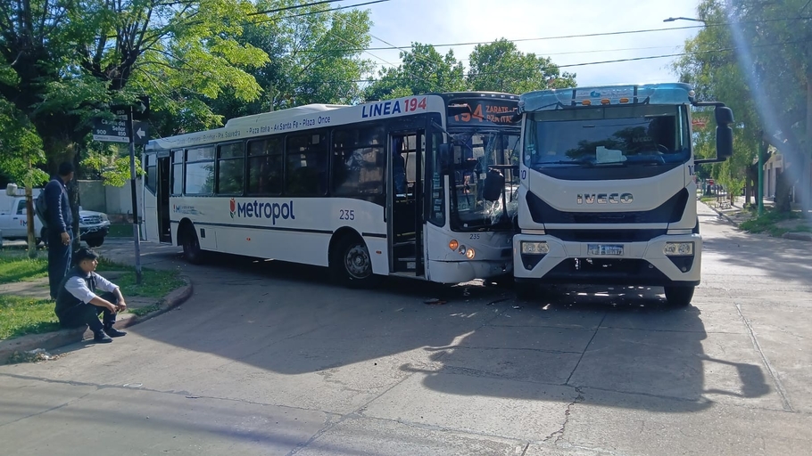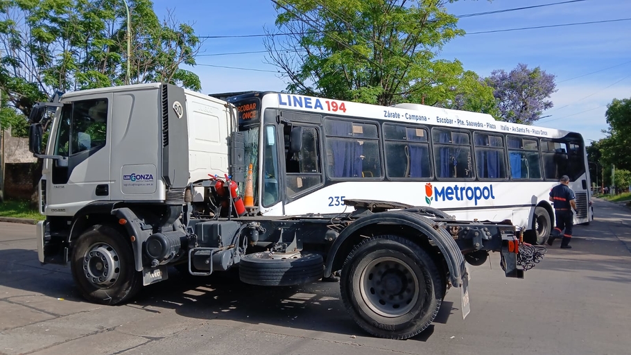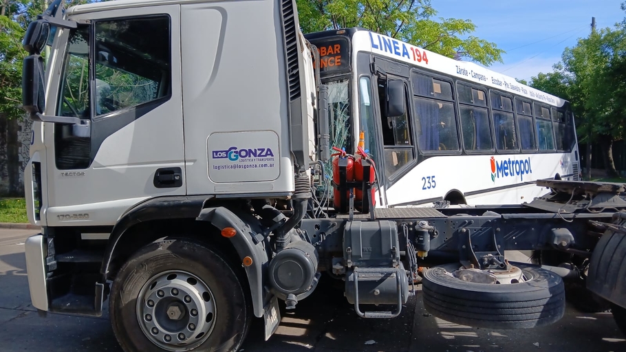 El accidente de tránsito entre un colectivo de la línea 194 (Once - Zárate) y un camión con chasis y cabina (sin su carrozado de carga) de la empresa "Los Gonzas, logística y transporte", se registró alrededor de las 8 de la mañana de este martes en la intersección de San Martín y Capilla del Señor.