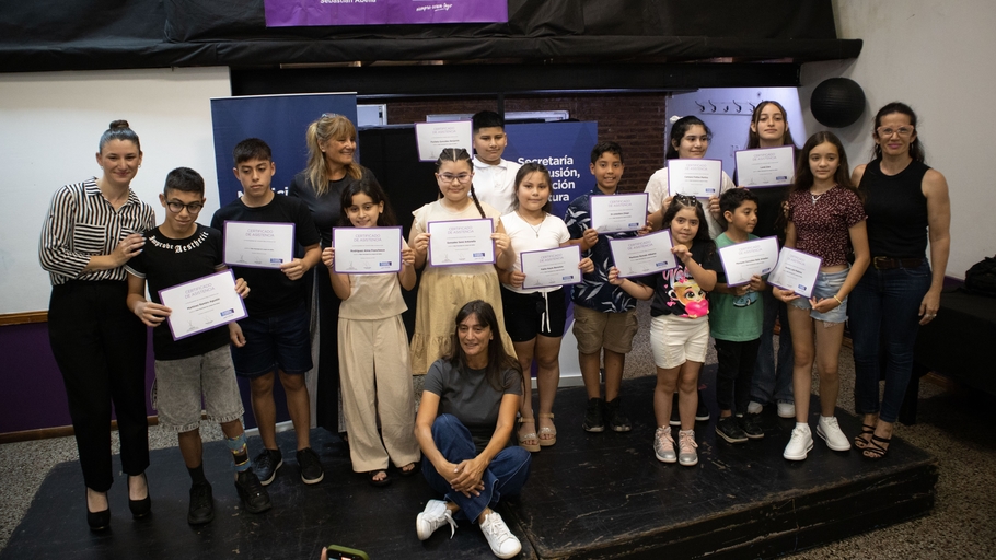 Impulsado por el Municipio, niños, jóvenes y adultos recibieron su certificado de finalización de curso. Elisa Abella acompañó el acto.