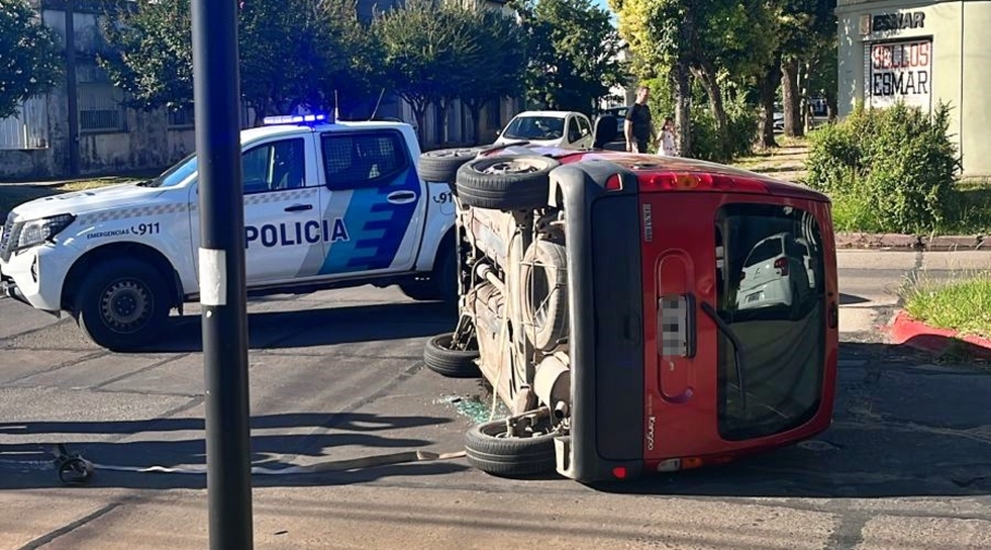 Por causas que aún no fueron confirmadas oficialmente, una Renault Kangoo, conducida por una mujer, terminó volcada sobre la calzada, quedando obstaculizada la mano de circulación en sentido hacia avenida Varela. A raíz del impacto, la conductora habría sufrido algunas lesiones en uno de sus brazos, aunque no fue necesario su traslado a un centro de salud.