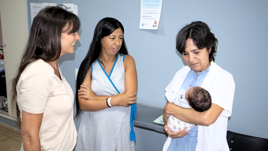 Las funcionarias felicitaron a la familia y le entregaron obsequios para el pequeño, además de conversar sobre el desarrollo del embarazo y conocer al equipo de profesionales que participaron del parto.