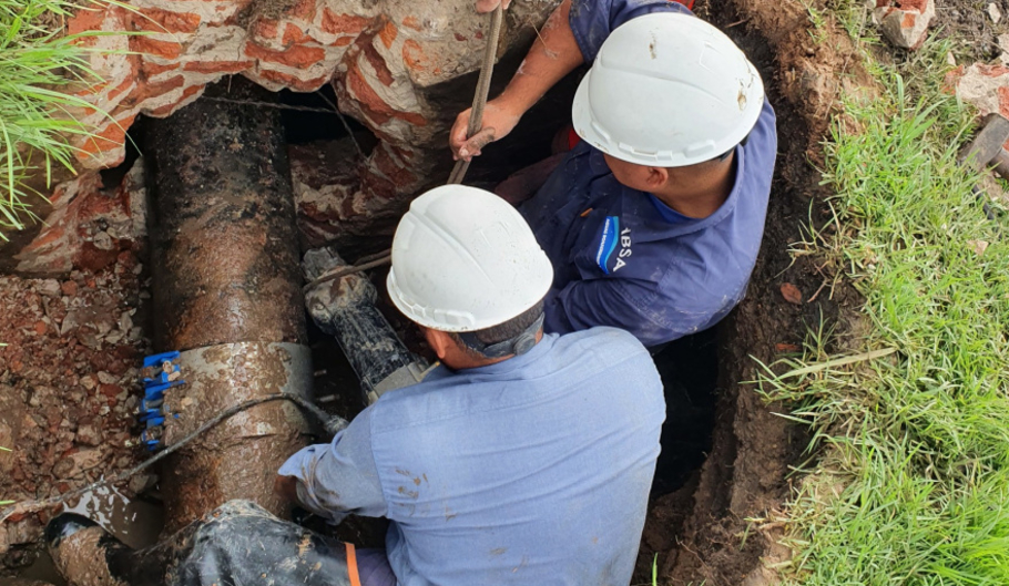 Una cuadrilla de ABSA trabaja en una perforación, afectando a usuarios de Villanueva, El Destino y San Felipe. El corte se extenderá hasta la finalización de los mismos.