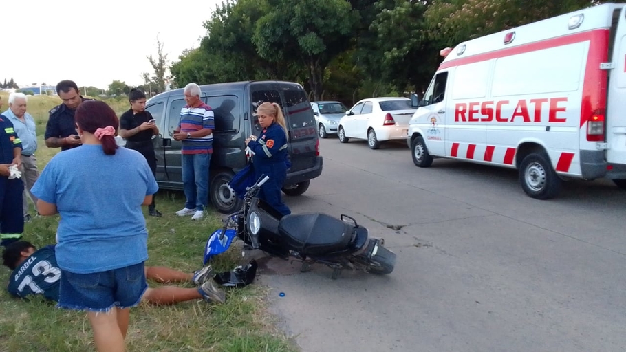 Un accidente de tránsito ocurrido este martes en el barrio San Felipe dejó como saldo un motociclista con lesiones de consideración. El siniestro se produjo en la intersección de Dorrego y la colectora, donde por causas que se tratan de establecer colisionaron una motocicleta y una camioneta tipo utilitario.