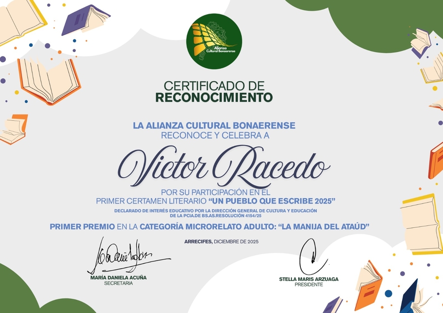 Con este nuevo reconocimiento en Arrecifes, Víctor Racedo vuelve a colocar el prestigio de las letras campanenses en lo más alto, recordándonos que el talento local no tiene fronteras cuando nace de la vocación y el compromiso.