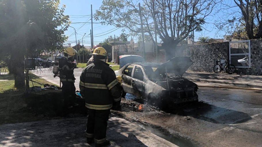 Un automóvil se incendió este lunes en la intersección de Andrés del Pino y avenida Varela, lo que motivó la intervención de los Bomberos Voluntarios de Campana. Al lugar acudió el Móvil 48 a cargo del subayudante Melo G., junto a personal policial y de patrulla preventiva.