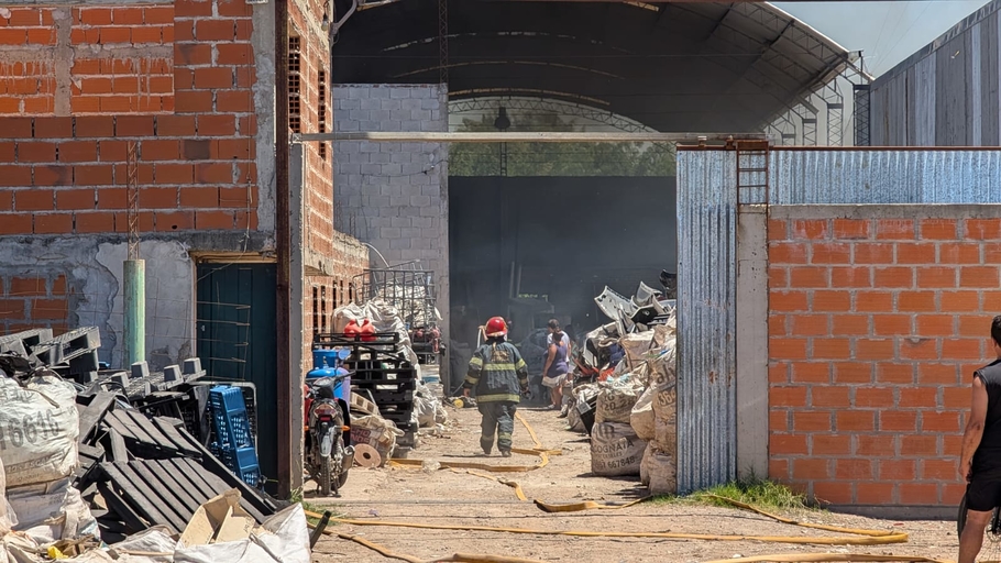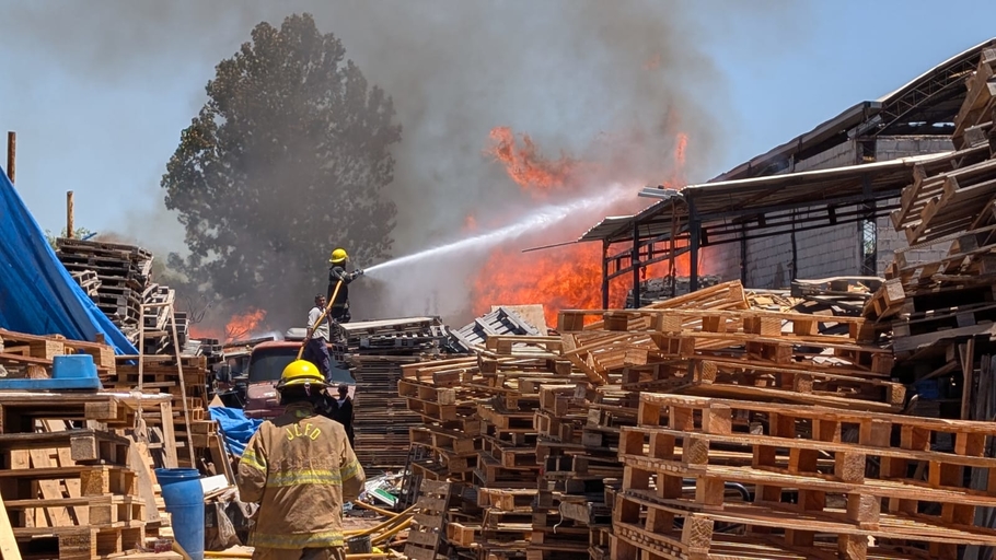 El voraz incendio se desató alrededor de las 13 horas de este lunes en un depósito de pallets ubicado en el barrio San Cayetano, generando una intensa columna de humo visible desde distintos puntos de la ciudad.
