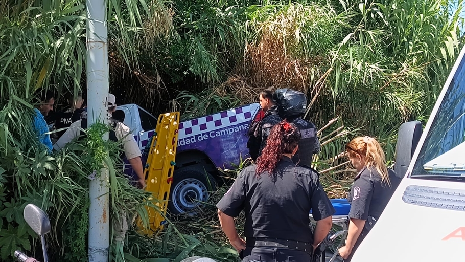 Ocurrió en la rotonda de Santa María de Oro y Sívori, donde el vehículo pasó de largo y terminó dentro de un cañaveral. La agente fue asistida en el lugar y trasladada por una ambulancia del SAME al Hospital Municipal San José.