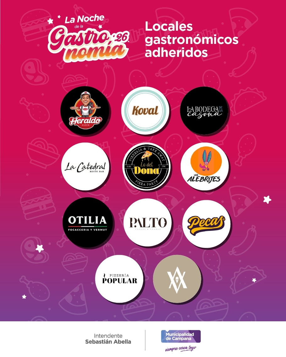En esta ocasión, los locales adheridos son: Koval Heladería & Café; Estación Natural; Lo del Dona; La Bodega de la Casona; Antares Campana; Anik Campana; Heraldo Pizza; La Catedral - Resto Bar; Chicago hot dogs; Emblema; Boulevard Deli&Café; Pecas Burger; Estilo Nápoles; VIVALENTI; Los Alebrijes; Blood Benz; Heladería Ariel, Otilia, Baum, Diner Bro´s, Palto y Pizzería Popular.