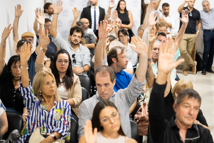 Ante un auditorio colmado de matriculados y matriculadas, la decisión fue respaldada por una amplísima mayoría, con ningún voto en contra y solo nueve abstenciones sobre más de sesenta asistentes,