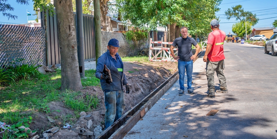 La obra integral de infraestructura que ejecuta el Municipio en el barrio Romano avanza con la construcción de cordón cuneta sobre la calle Salta.