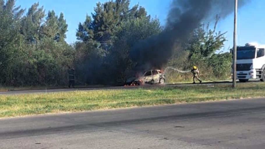 El automóvil se incendió este viernes por la tarde sobre la Ruta 6, mano hacia Campana, en el tramo comprendido entre el puente de la empresa Honda y las unidades penitenciarias 21 y 41.