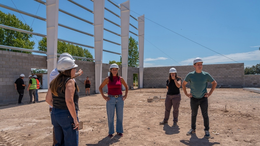 El intendente y la secretaria de Inclusión, Educación y Cultura, Elisa Abella, supervisaron este viernes la instalación de las columnas y vigas metálicas. “Estamos haciendo realidad una obra que será clave para impulsar el deporte y los eventos recreativos y culturales en la ciudad”, remarcó el jefe comunal.