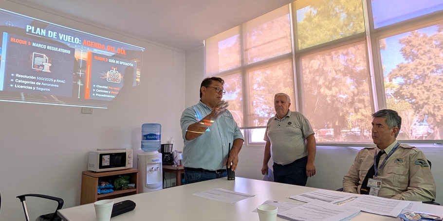 Esta instancia de formación inicial se dividió en dos etapas pedagógicas. En primer lugar, Félix Colacilli, referente de la empresa IEMPAC, disertó sobre los aspectos legales básicos del Código Aeronáutico y la reciente Resolución 550/2025. Durante esta charla, que resultó sumamente dinámica gracias a las consultas de los presentes, Colacilli puso a disposición la estructura de su empresa para asesorar y gestionar los permisos especiales necesarios ante las autoridades cuando se requiera operar en zonas restringidas por emergencias.