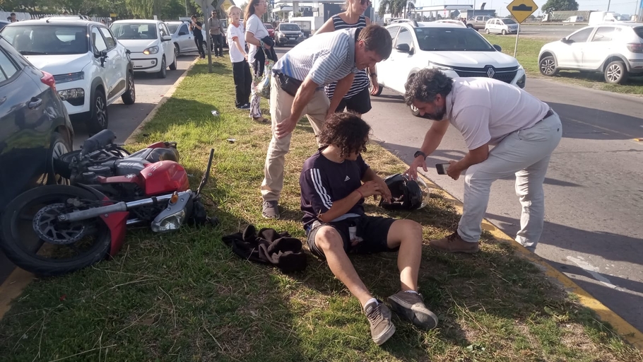 Según testigos del hecho, un motociclista ingresó a la dársena de ascenso y descenso desde la calle vecinal por causas que aún son materia de investigación. En ese trayecto, el conductor no pudo mantener la estabilidad del rodado y terminó impactando de lleno contra la parte trasera de un Renault Kwid que estaba allí detenido.