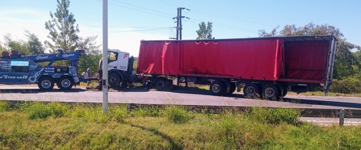 Un vehículo con acoplado perdió el control y terminó en la banquina a la altura de la subida a Ruta 6, mano provincia, y debió ser removido mediante un operativo con una grúa de gran porte que obligó a interrumpir la circulación.