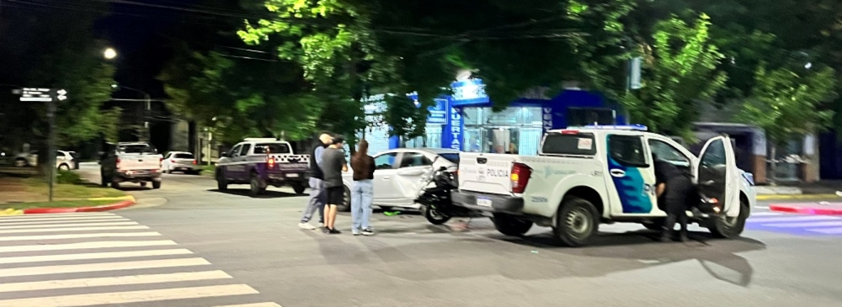 Un siniestro vial ocurrió en la transitada Avenida Varela, a la altura de su cruce con Bertolini, en la mano que conduce hacia el centro de la ciudad. Por razones que los peritos intentan establecer, un Chevrolet Prisma recibió un impacto de gran magnitud en su puerta trasera izquierda por parte de una motocicleta. La fuerza del choque provocó que el vehículo mayor realizara un giro inesperado sobre la calzada, terminando finalmente atravesado sobre la mano que se dirige hacia la plaza principal, lo que interrumpió por completo el flujo vehicular en ese sector.