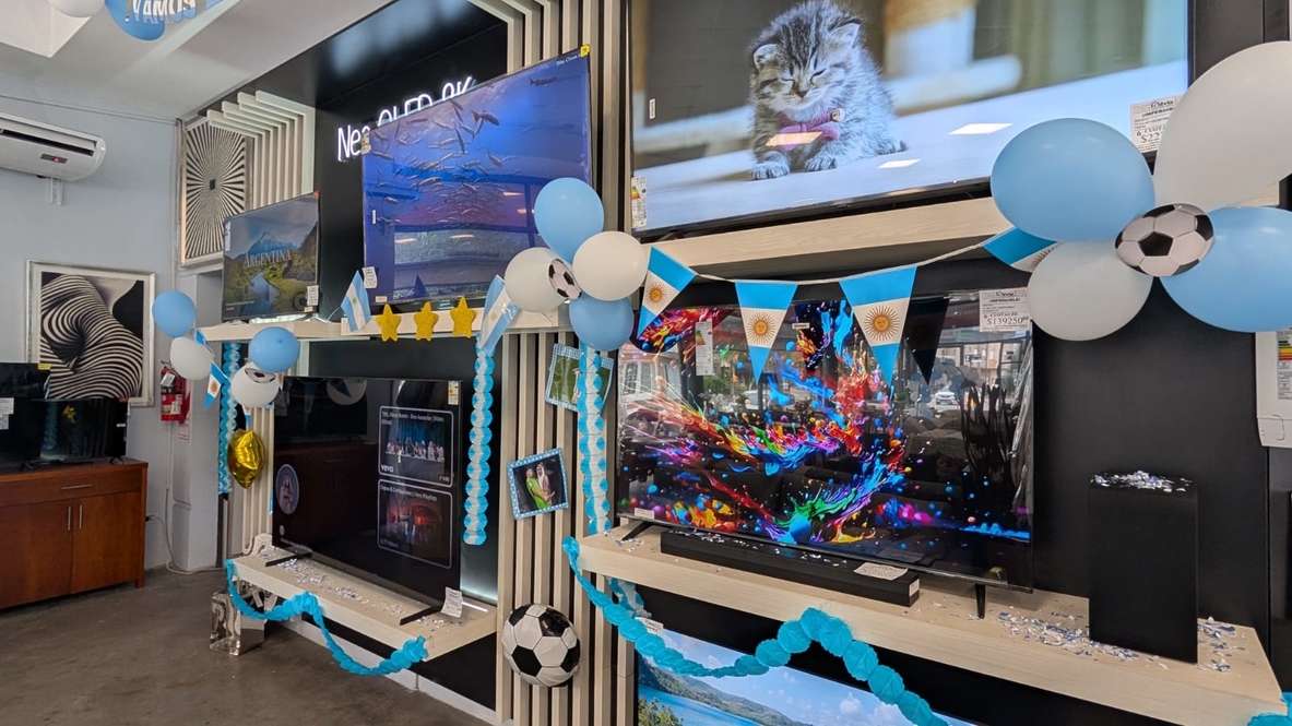 Entre las ofertas destacadas, se encuentran televisores como el TCL QLED de 43 pulgadas, disponible en 6 cuotas sin interés de $84.990, con un precio de lista de $509.940. La propuesta apunta a que cada cliente pueda equiparse para disfrutar del evento deportivo con la mejor calidad de imagen.