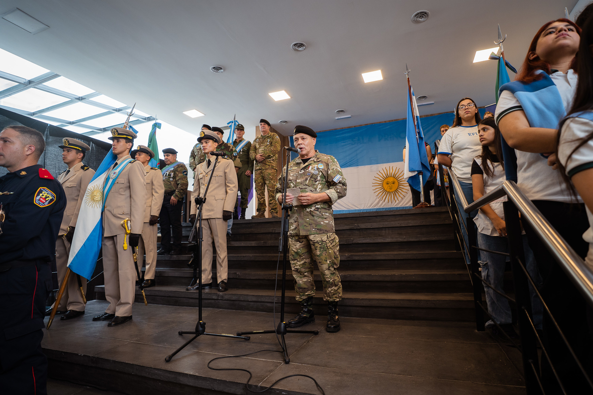 "Hoy no venimos solamente a recordar una guerra. Venimos a reconocer a quienes estuvieron allí. Venimos a agradecer. Y venimos a asumir algo que muchas veces olvidamos: que Malvinas no es solo un lugar en el mapa, Malvinas es una causa, es memoria y es identidad", destacaron los profesores Pablo Modarelli y Fernanda Lago durante sus palabras.