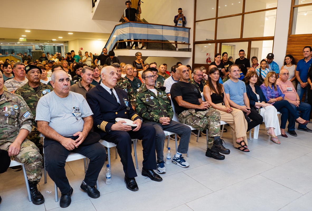 Todo en el Teatro Pedro Barbero, cuya sala de exposiciones lucía retratos de "Nuestros Héroes de Malvinas" en reconocimiento a los 53 campanenses que ofrendaron su vida para defender la soberanía argentina.
