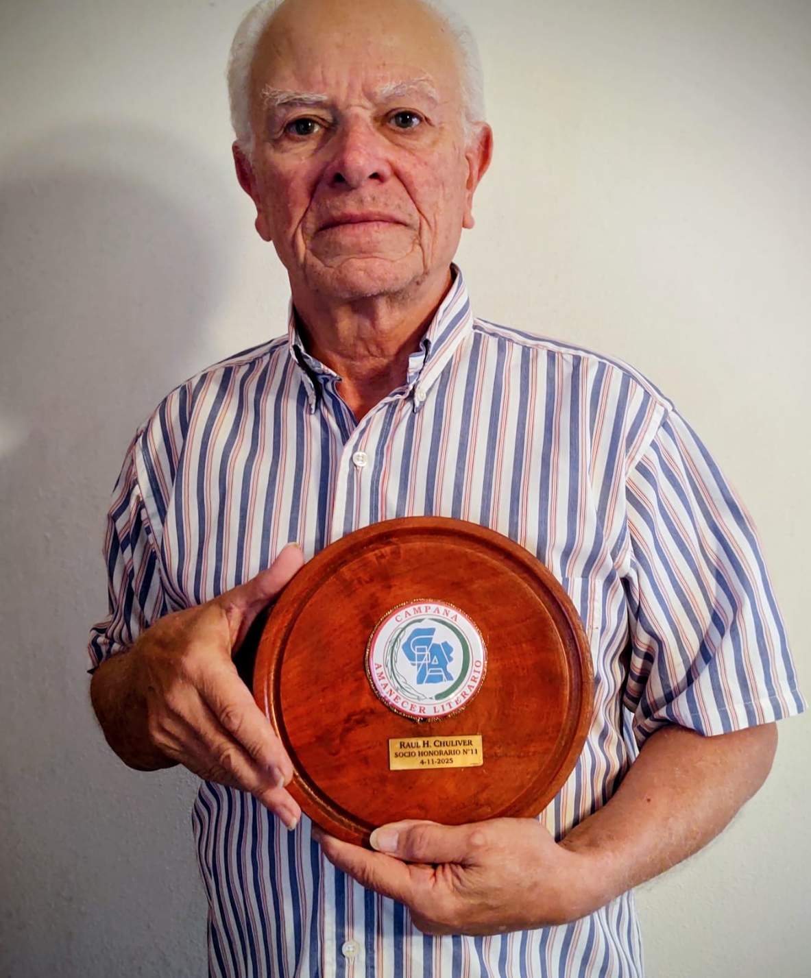 Uno de los momentos más destacados de la noche fue la distinción de Chuliver como Socio Honorario Nº 11, en reconocimiento a su permanente acompañamiento a la entidad desde sus inicios. Como parte del homenaje, se llevó a cabo la firma del Libro de Oro, preparado especialmente por la socia Adelina Fontanella.