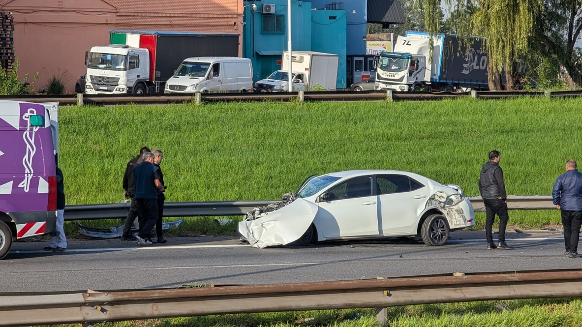 Un Toyota colisionó contra un vehículo de gran porte a metros del Puente del Arco, generando demoras en la circulación hacia Capital Federal y el traslado del automovilista al hospital local.