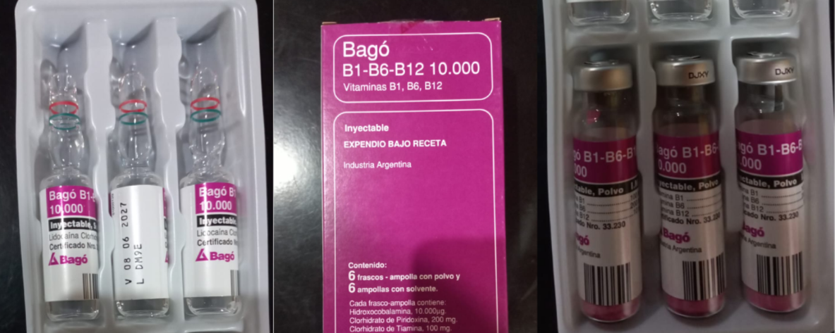 Se trata específicamente del inyectable Bagó B1 B6 B12 10.000, que se presenta en cajas de 6 ampollas. Según explicó, para cubrir el tratamiento mensual necesita al menos cinco cajas, pero actualmente el producto se encuentra en falta en farmacias.