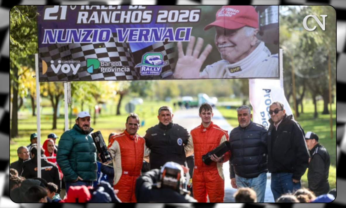 Luego de la postergación obligada por las malas condiciones climáticas a fines de marzo, el Rally Mar y Sierras retomó su actividad para disputar la segunda fecha del calendario 2026. El escenario fue el Rally de Ranchos, en una edición especial que rindió homenaje a Nunzio Vernaci y que contó con una destacada presencia campanense en los caminos del partido de General Paz.