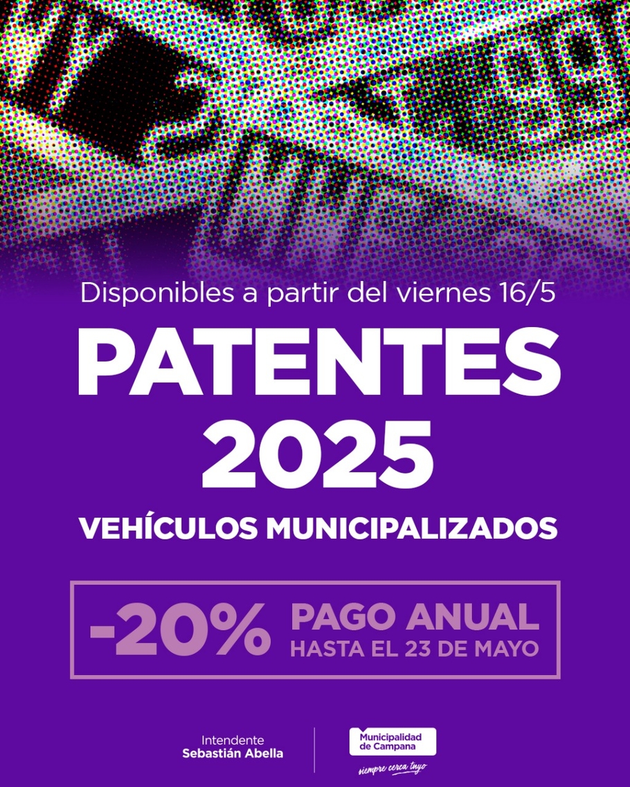 Tal como ocurrió con la Tasa de Servicios Generales, el Municipio informó que habrá una importante bonificación por el pago anual de las patentes de vehículos municipalizados. En esta oportunidad, es del 20%.