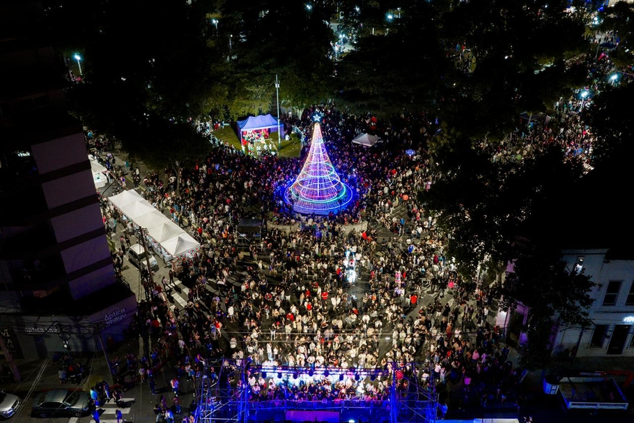 Todo bajo la impecable organización del Municipio y con la presencia del intendente Sebastián Abella y la secretaria de Inclusión, Educación y Cultura, Elisa Abella, quienes fueron los encargados de encabezar la cuenta regresiva que encendió el arbolito ya sobre la noche.