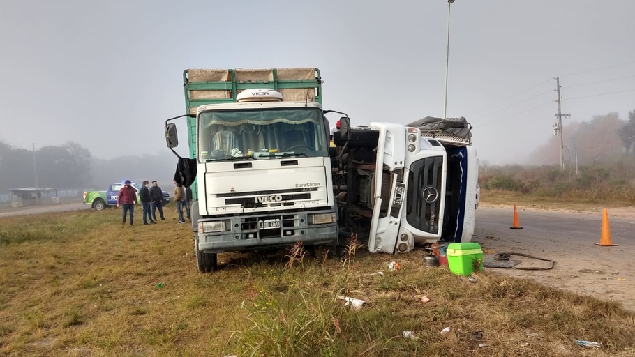 Por el lugar circulaba un Mercedes Benz que trasportaba pollos, el cual realiza una mala maniobra sorprendido por la niebla existente en aquel momento y de la falta de luz del lugar, por lo que terminó volcando.