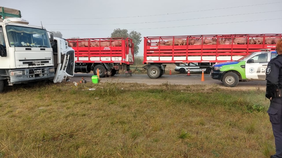 Intervinieron en el lugar varios móviles del CP, balizando la zona para evitar nuevos accidentes, y al resguardo de los animales.