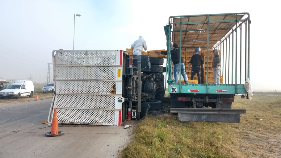 El conductor del vehículo resultó ileso, y ya en horas de la mañana, con la luz del día, arribó otro camión perteneciente a la misma empresa para realizar el traspaso de las jaulas con las aves de corral.