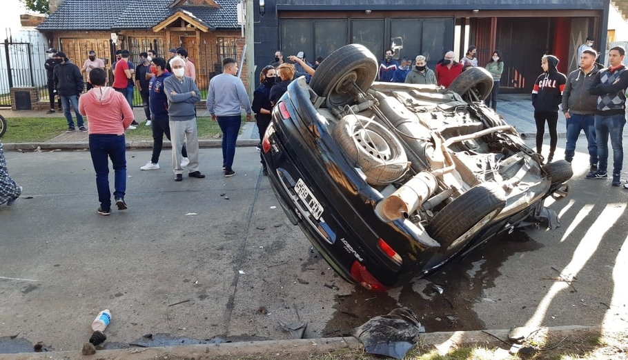 A toda velocidad, volcó y quedó atrapado en el interior del auto
