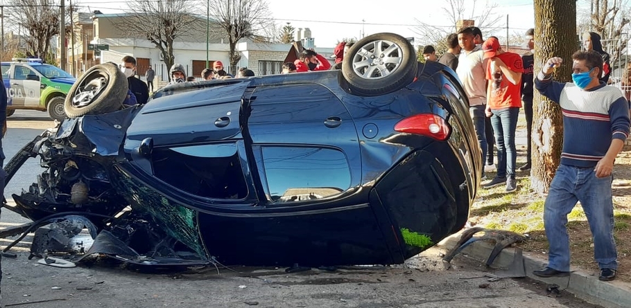 Cerca de las 15.50 hs, un violento accidente tuvo lugar en Necochea casi esquina Bv. Sarmiento, donde un automóvil volcó y quedó destrozado.