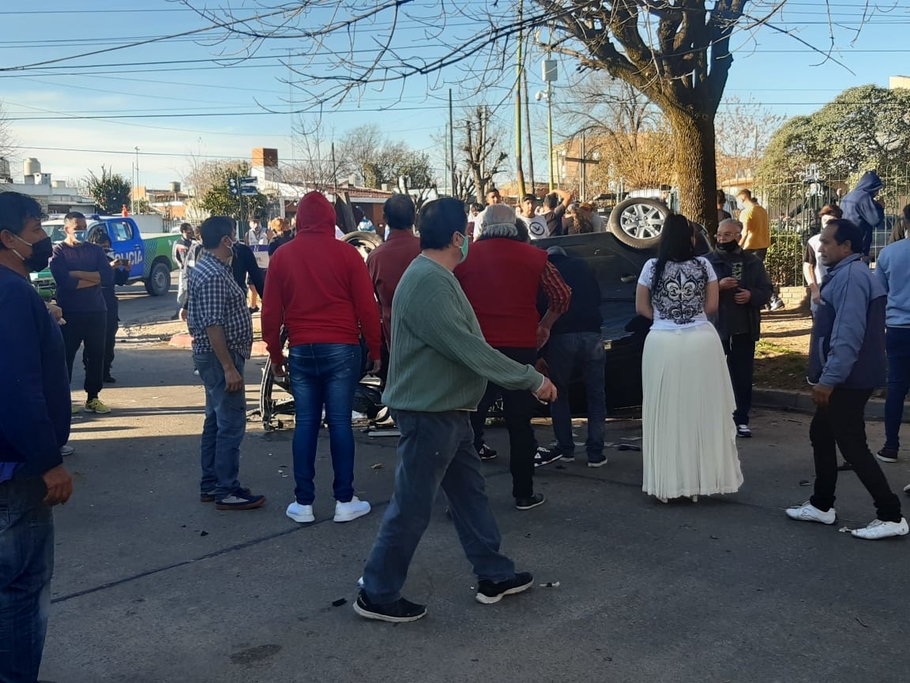 El conductor, un miembro de la Comunidad gitana, resultó herido junto a un menor de edad, en un accidente ocurrido esta tarde, en Necochea casi Bv. Sarmiento. Bomberos y Policía trabajaron en el rescate, y buscando apaciguar a una gran cantidad de familiares y allegados a la víctima, que fue conducida al Hospital San José.