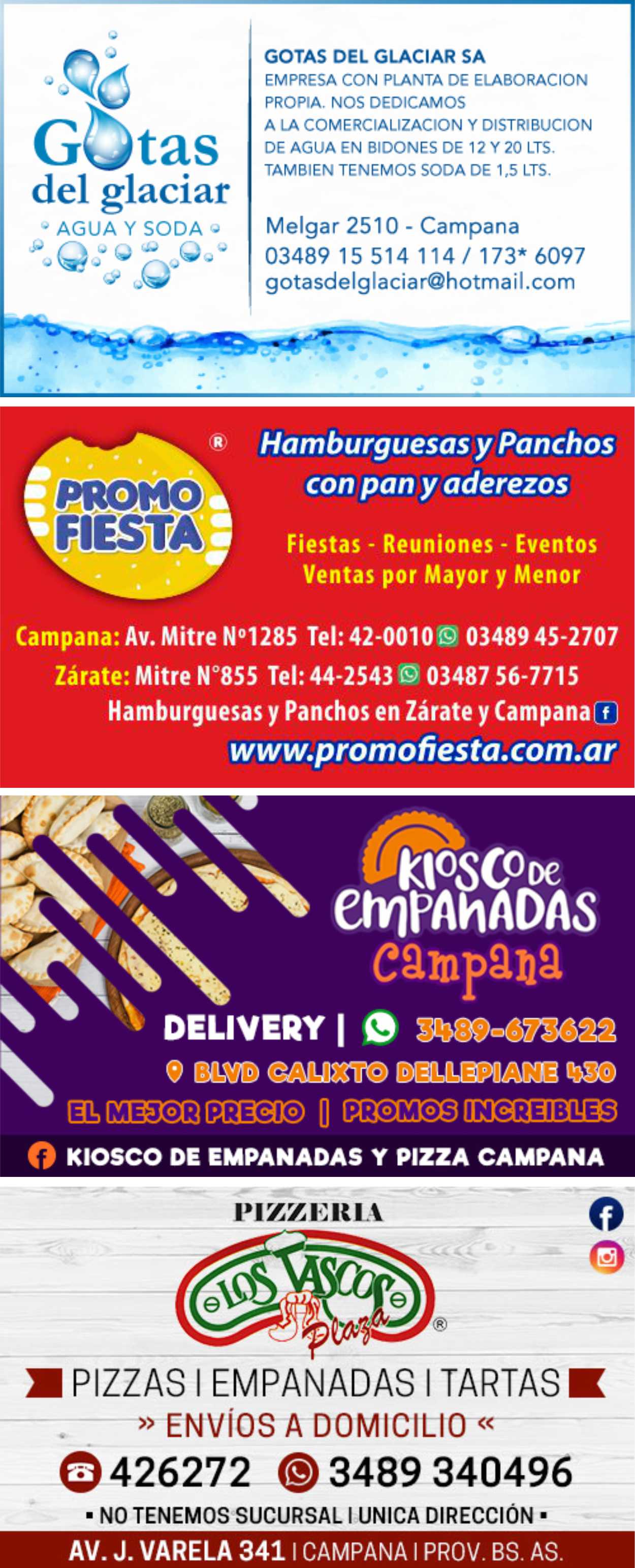 - Campana: 68 Casos Positivos totales; 103 Casos Recuperados y 3 Fallecidos.
