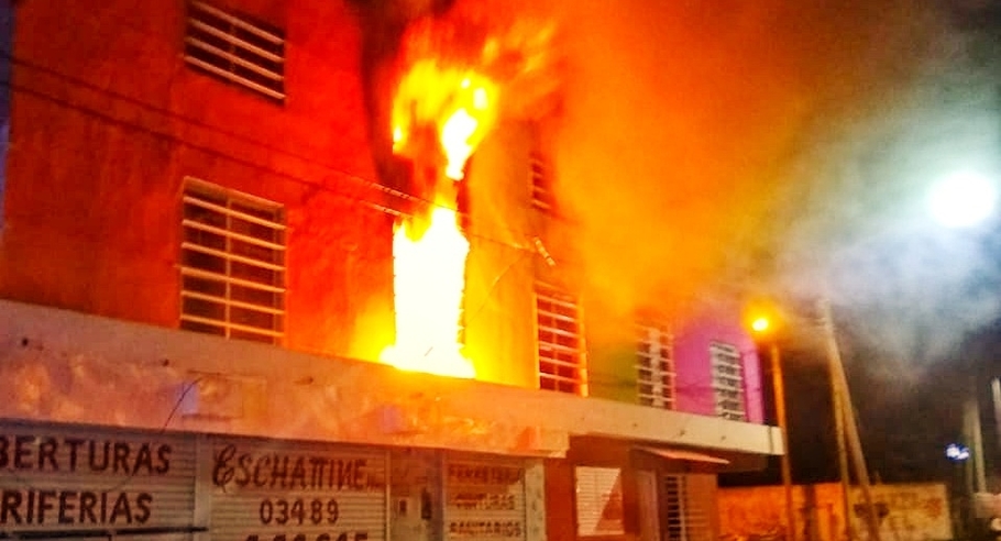 El siniestro se produjo en horas de la noche durante la jornada de ayer cuando, según la información trascendida, un cortocircuito dentro del edificio provocó el inicio de un incendio en un dúplex ubicado sobre Colectora Norte y Maggio, estructura perteneciente al barrio La Josefa, y específicamente arriba del Corralón Eschattine, el cual por fortuna se encontraba deshabitado.