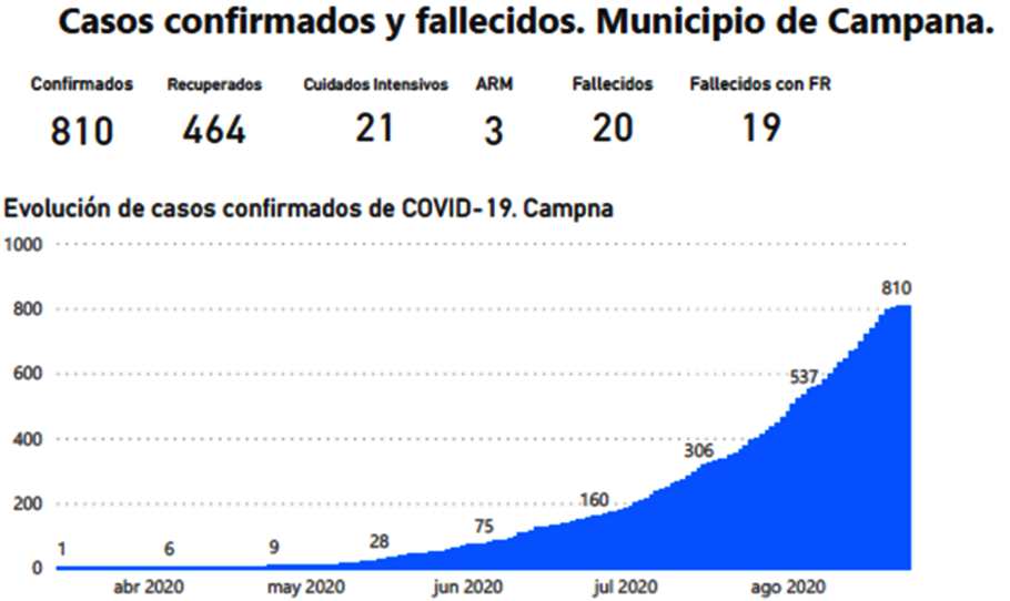 Hoy, el Municipio de Campana informó de 788 Casos Positivos de Coronavirus y 23 Fallecidos, conforme su Informe Oficial.