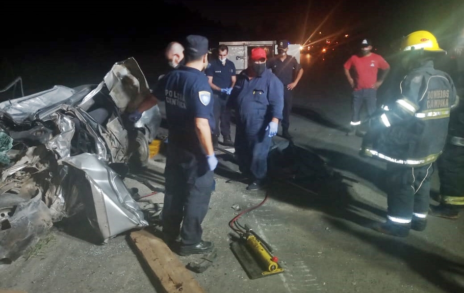 Ya caída la noche y bajo la luz artificial, se continuó con la recolección de pruebas y se completó la remoción de los restos del vehículo. Intervinieron Bomberos Voluntarios a cargo del Ayudante Gómez, Policía con el Móvil 27213 a cargo del Sargento Capobila y el Oficial Morlas.
