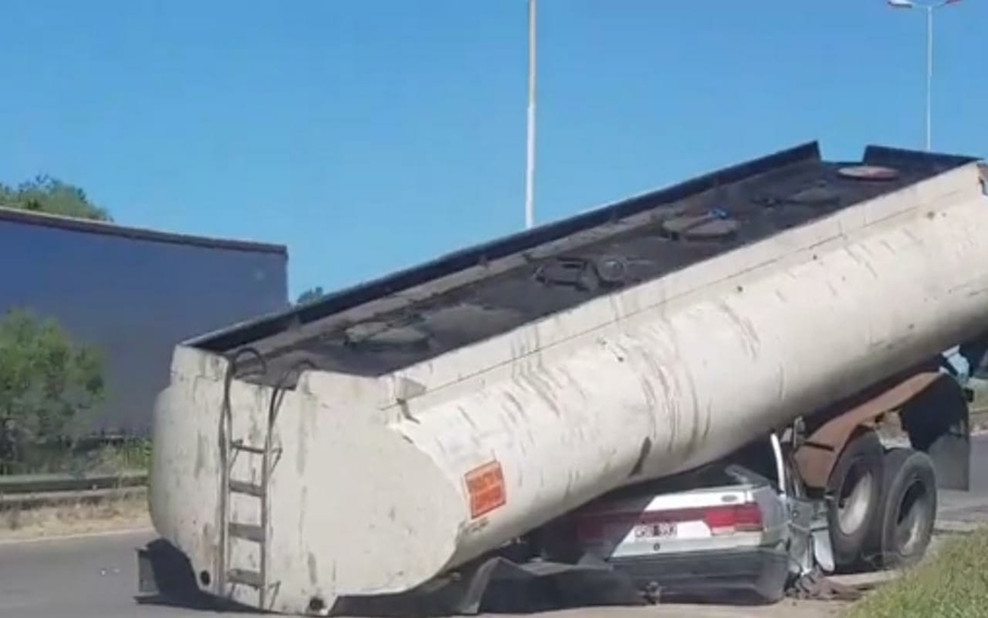 El auto quedó debajo el cisterna.