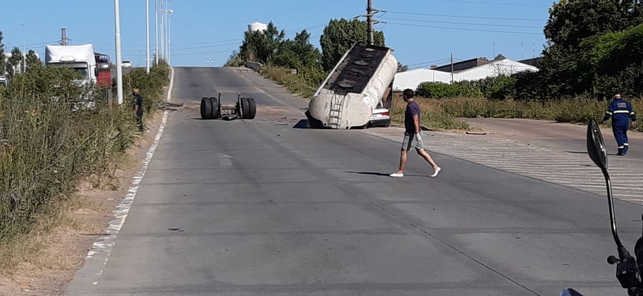 Ocurrió esta tarde, sobre la mano hacia Ruta 9 de la Autovía 6. A la altura de la salida hacia la empresa Tenaris, de un camión Mercedes Benz 1620 se desprendió el tanque cisterna, cayendo sobre un automóvil Ford Galaxy en el que viajaba un adulto, y un menor.