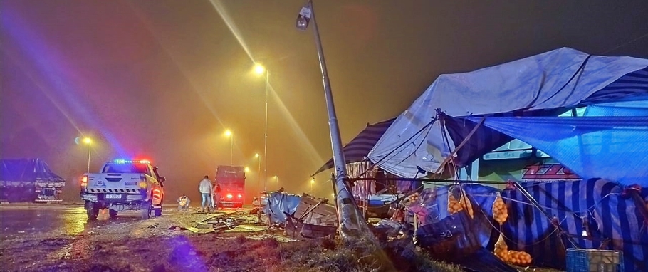Allí, el conductor de un camión Ford Cargo proveniente de Brasil, perdió el control por causas desconocidas. En el errático trayecto, impacta contra una columna de alumbrado y produce daños y roturas en la estructura de un puesto de ventas de frutas y verduras que se encuentra en el lugar.