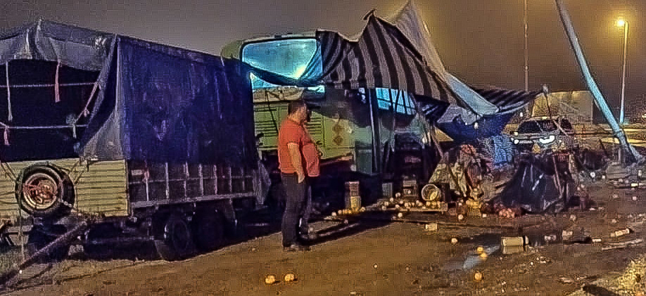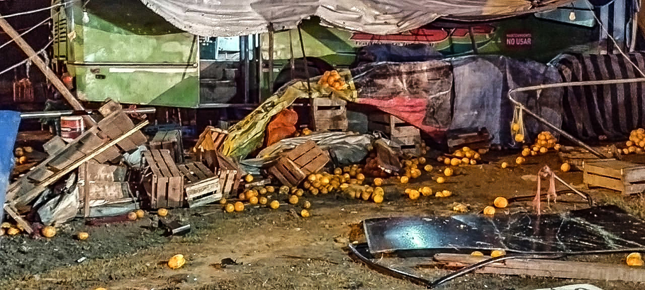 Camión perdió el control y arrasó con parte de un puesto de frutas