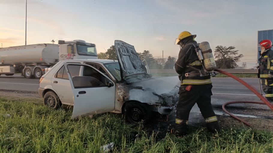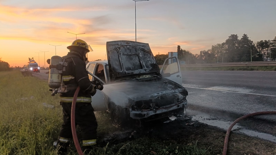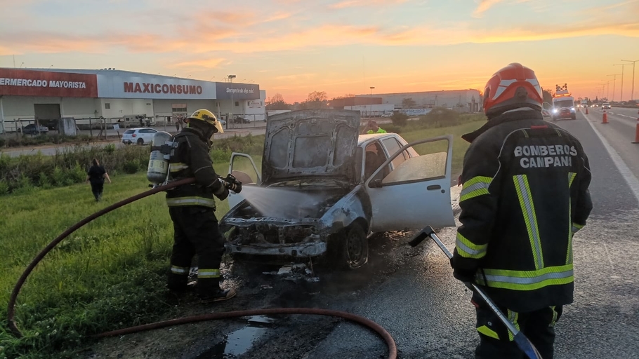 El hecho ocurrió a la altura del kilómetro 74 cuando un Ford Fiesta comenzó a prenderse fuego en el motor. La pareja que viajaba en el vehículo logró detenerse y ponerse a salvo antes de que las llamas avanzaran. Bomberos Voluntarios de Campana y personal policial trabajaron en el lugar.