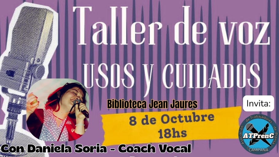 En esta oportunidad, la capacitación estará a cargo de la coach vocal Daniela Soria, quien dictará el “Taller de voz: usos y cuidados”, destinado a periodistas, locutores, relatores, actores, docentes, cantantes y en general a todos los trabajadores de la voz. El objetivo será brindar herramientas para un manejo correcto y saludable de la voz en contextos laborales y artísticos.